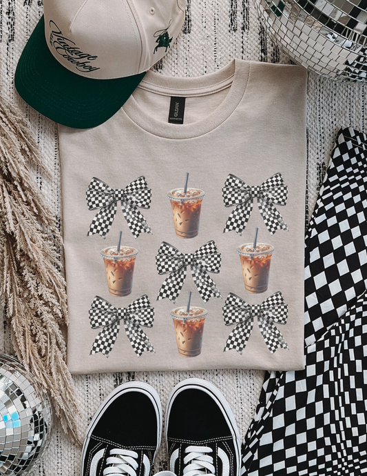 Checkered bow Iced Coffee Graphic